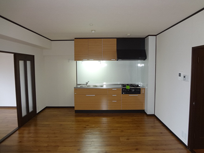 キッチンとリビングの間仕切りの壁を撤去し、LDKの広い空間を創りました。